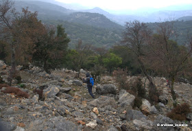 ανάμεσα στο πετρώδες έδαφος και στην συνέχεια ανάμεσα στους πρίνους που